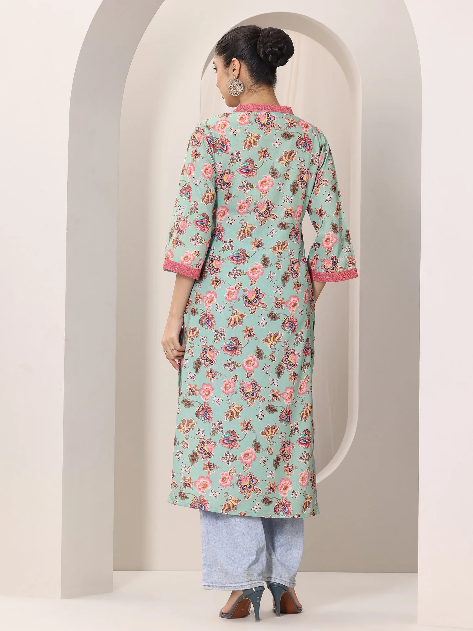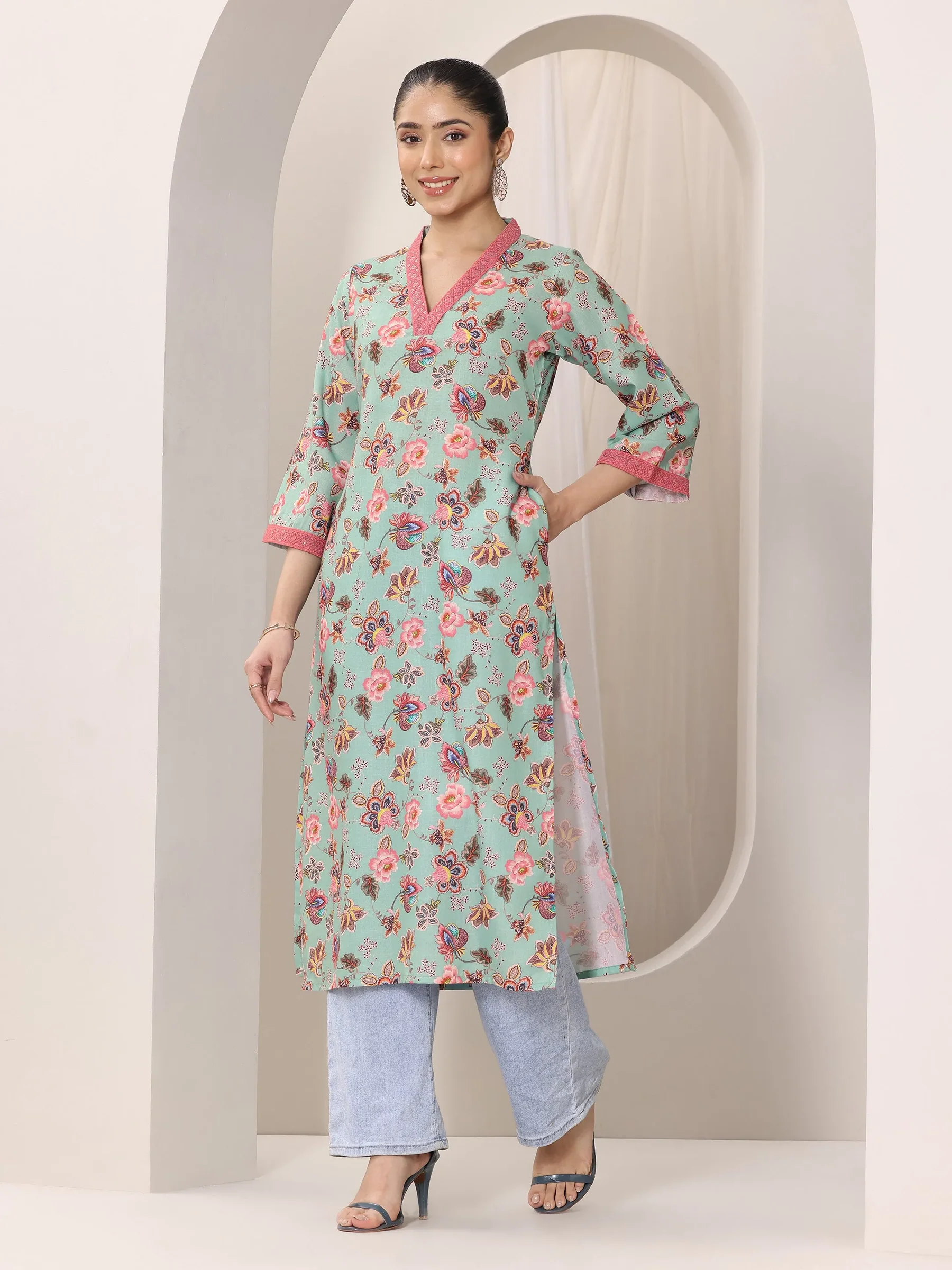 Green Printed Cotton Straight Kurta
