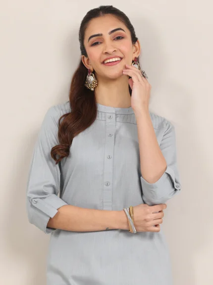 Grey Embroidered Silk Blend Straight Kurta